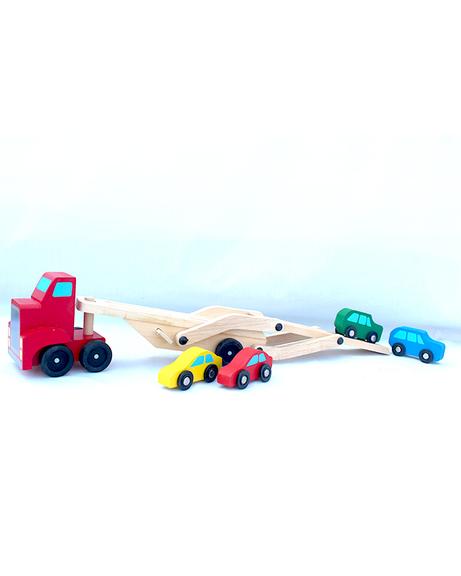 01 Carrier Truck and 4 Cars Wooden Toy Set