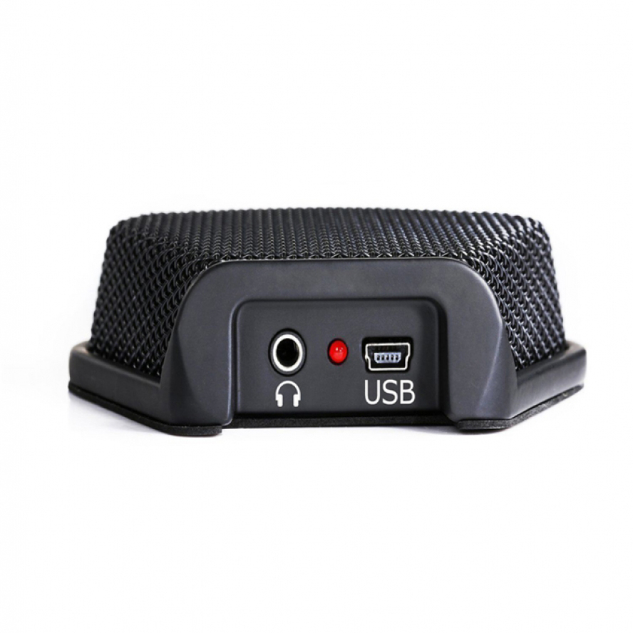 - The microphone features three audio capsules and is capable of capturing sound in a 20 ft. radius, with 180-degree coverage.