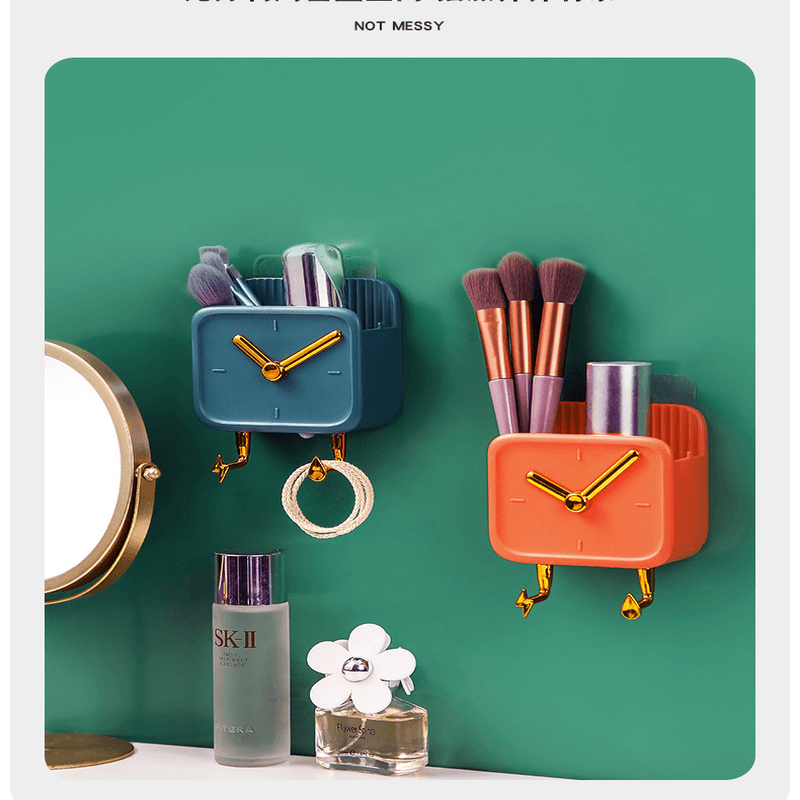 Stylish Appearance: Porous drain, clock modeling, simple and elegant appearance, beautiful and practical. Wall mount design, save space. Electroplating hook for hanging items.