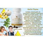 Garlic and thyme, the two powerful antioxidants combine to create a great tool in maintaining good health. When garlic is cut or crushed, enzymes react to produce a powerful immune-enhancing agent. Powerful antioxidant helps protect the body against free radicals. Helps support the conversion of fats to energy. The dietary use of garlic and thyme has been traced back thousands of yea Today, we are starting to understand how they work. Studies have shown that garlic?s other ingredients help the metabolism convert fats to energy and protect the body against free radicals. Thyme contains saponins and other beneficial antioxidant substances.