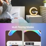 ?Multifunctional wireless charger? Our product has 4 in 1 functions, include Bluetooth speaker, night light, FM Radio, Fast wireless. Our product team special design Big “G” fashion looking, smooth touch and 6 Mode RGB music sync lamp.Best birthday gift ideas 2023.