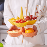 The fruit tray can be stacked in multiple layers to save space. It can be placed on the coffee table or dining table to store all of the family’s favorite items, such as various fruits, various dried fruits, and small snacks.