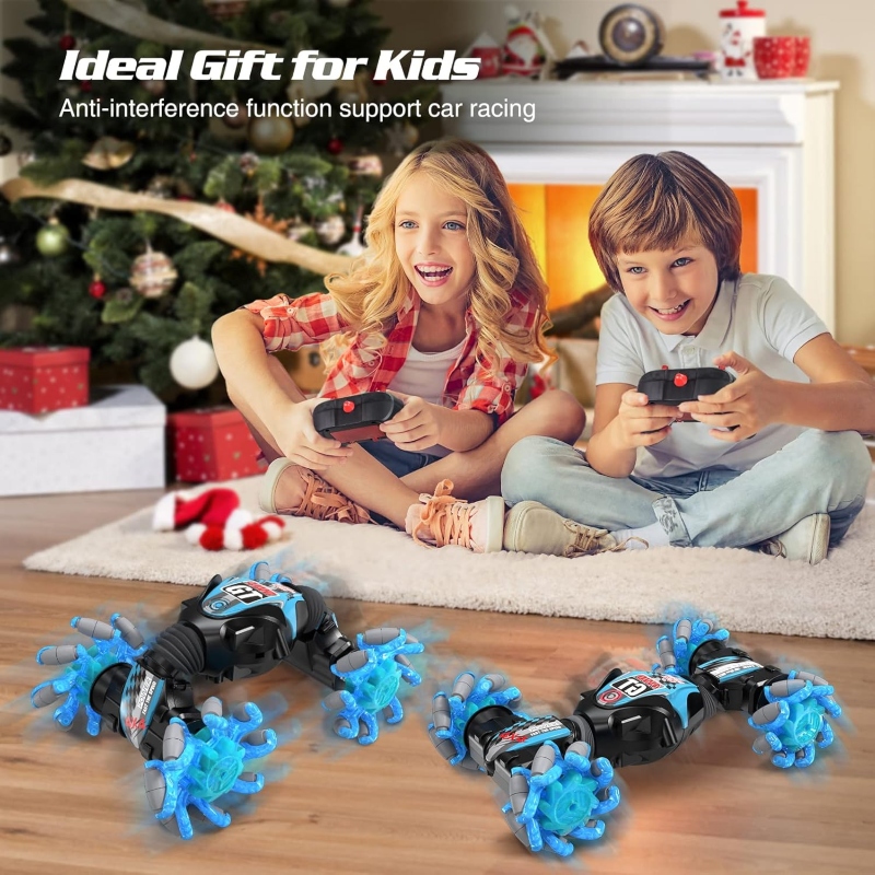 [Lateral oblique drift torsion car & drift command] This RC twisted car has multi-directional drift command, with intelligent gesture sensing function, portable and fun to operate, one-click easy to complete drift stunt! Lateral oblique drift torsion car has twisted and driven at a high speed, innovative playing brings unique fun to kids. So that children can experience different pleasures.