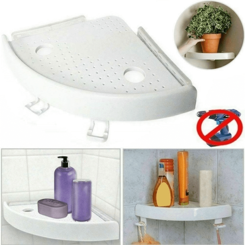 - Triple Corner: Save up a lot of space in the bathroom or kitchen triple corner. Purchase more to make layers of holder to meet your needs, a very practical space-saving rack. What?s more, you can hang home accessories on the 2 hooks, keeping your home, kitchen, bathroom tidy.